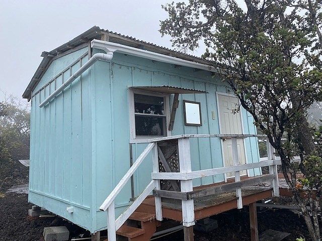 Located at approximately 4,000 ft elevation, enjoy cool nights and beautiful ocean views during the day. This well-built off-grid, unpermitted cabin located at the top left of the subdivision and abuts against state forest land. The cabin is 16’x12’, with an additional 96 sq ft of deck space for a total of 288 sq ft. living area. Home is completely off-grid and includes solar panels, flush toilet, outdoor shower, small kitchen, bunk beds and a single bed, and built-in shelves and 1 bath. If you enjoy peace, quiet and privacy, this home is perfect for you. Cabin cannot be seen from the road.