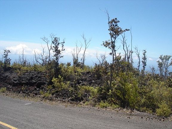This is the bottom parcel of the 4 side by side acres. Front is level with the street & bisected by a big valley on the upper lot. Lots of young growth Ohia tress and native plants. Some Pahoehoe. Viewsand sunsets are phenominal. Make this your own 4 acre in Hawaii.