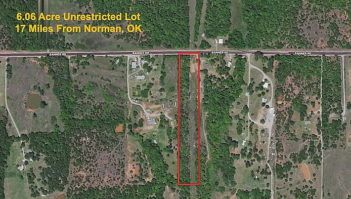 Don't miss out on this opportunity to own a quiet, 6.06-acre tract of land in the country… that’s not very far away from a number of cities. We priced it below market value for a quick sale. A 6.06-acre unrestricted lot ready for your home. It has approx. 205 feet facing Banner Road (a paved road). The lot is approx. 1,320 feet deep. The Lexington Wildlife Management Area (LWMA) is 6 miles from this property. This is a 9,512 acre hunting area that also offers primitive campsites… a shooting range… hiking trails… and fishing on Dahlgren Lake and several small ponds. Lake Thunderbird State Park is 9 miles from the property. A beautiful and spacious park where you can enjoy picnics by the water… boating… fishing… camping… swimming… kayaking… hiking… mountain biking… horseback riding… and see beautiful sunsets! ----------------------------- Property Location: Street Address: Banner Road Subdivision: N/A City: Lexington County: Cleveland Zip Code: 73051 ------------------------------------GPS Coordinates To This Property: GPS Coordinates: ???????35.1004, -97.2478 4 Corner GPS Coordinates: Northwest Corner: 35.1021, -97.2475 Northeast Corner: 35.1021, -97.2482 Southwest Corner: 35.0985, -97.2482 Southeast Corner: 35.0985, -97.2475 Google Map Link: https://goo.gl/maps/ExtjvmAwHnLvufr88 -------------------------------- Property Details: Size: 6.06 acres School District: Noble School District Elementary School: John K. Hubbard Elementary School Middle School: Curtis Inge Middle School High School: Noble High School Property Taxes: $283.86 per year Water: A water well is on the property Electricity: At the road, provided by Oklahoma Electric Cooperative (OEC) - Tel: 405-321-2024 Sewer: Septic system needed Gas: Propane tank needed Mobile Home Allowed: Yes Flood Zone: No