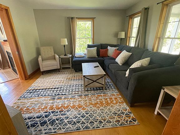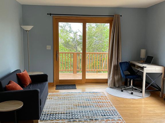 Bedrooms are 2 queen rooms, and 1 twin over double room. All bedrooms, 2 full baths, and washer/dryer on second level. Main level has kitchen, dining room, living room, den, powder room, and mudroom. 2 car attached garage and walk out basement available for use. Small yard, and views of Blue Hill from the large back deck. Home is in a quiet, private neighborhood. Dogs may be considered.