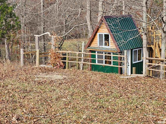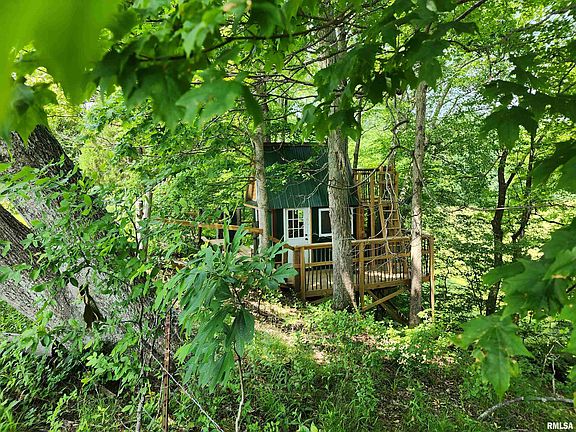 PRIME HUNTING WITH SHAWNEE NATIONAL FOREST ON THREE SIDES of this beautiful 80.326 acre farm, & the pictures do not do it justice! It includes a secluded tree house cabin by the spring fed creek that borders a portion of the west side. Every kind of native wildlife can be seen here - deer, turkey, bobcats, birds of every feather, etc.! We saw a huge buck across the creek!!! Beautiful building sites to choose from with spectacular views! Several areas to build a pond! Has been in the same family for many years and mostly ran cattle. At present, there is no drive access, but an easement has been given for access. Electric and water are available at the road.