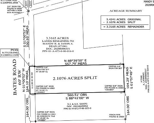 An incredible opportunity to build your dream home near all the wineries just off Bates Rd. 2.107 Acres are being split from owner's current land. City utilities are available at the street. A survey has been completed and soil testing have been completed for a future septic system. Property is staked right after the speed limit sign on Bates rd. Please park safely as there is no driveway. Bring your drawings and builder to transform this land into your new home!