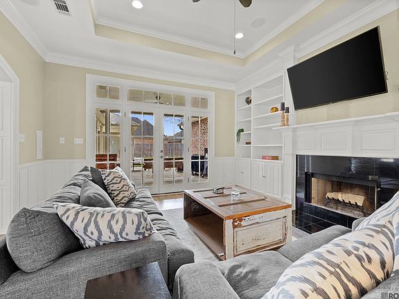 This beautifully maintained 3 bed, 2.5 bath home offers an inviting arched open floor plan with great curb appeal and a long driveway leading to the rear covered carport, secured by a decorative access gate across driveway and enclosed with wood fencing. Inside, enjoy new luxury vinyl plank flooring, updated Quartz countertops, fresh interior paint (2021), and a stunning kitchen with updated cabinets. The spacious living room features a tall tray ceiling, cozy wood burning fireplace, custom bookshelves, and built in speakers. Large windows in both the living and formal dining rooms flood the space with natural light. Double French doors open from the living room to a large covered patio with a pergola, perfect for game day or holiday entertaining. The master suite features two closets, double vanities, a whirlpool soaking tub, and a large separate shower. Additional highlights include built-in drawers in the spare bedroom, a generous laundry room with cabinets and a lavatory, and a convenient half bath located just off the kitchen and patio. Recent upgrades include new front doors, garden lighting, and a full exterior repaint in 2025. All of this is just 5 minutes from the Mall of Louisiana and some of the best restaurants in South Louisiana. Schedule your private showing today!