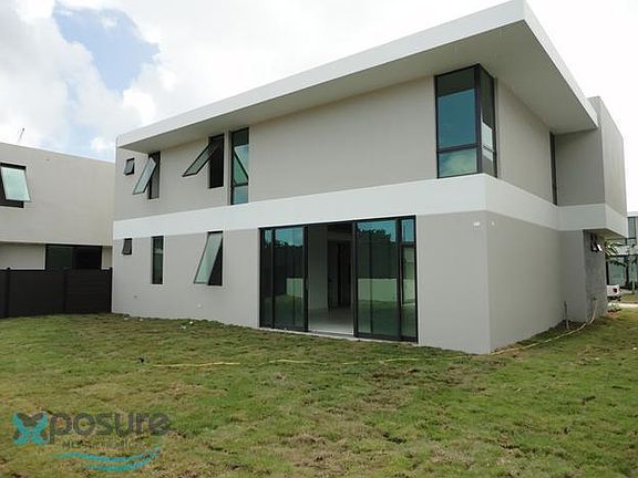 Two level house with grand salon and 18' ceiling providing spacious feeling and natural light. Flex room on first floor with full bathroom and walk in closet can be used as junior suite, office, family, studio, or bar lounge. Second floor has open to below with glass handrails for a modern look, all 4 bedrooms with walk in closets, two with private bathrooms and two shares a "Jack and Jill" bath, plus the laundry room close to bedrooms. Equipped with solar panels and backup battery, kitchen and laundry appliances, charging station for electric vehicles and golf cart, solar water heater, split air conditioners, lightning fixtures, window blinds, unfurnished. Riviera Community has Clubhouse, infinity swimming pool, fitness center, basketball courts, playgrounds, pet park, walking trails and direct access to Riviera Tennis Center with Beach Tennis, Padel, Pickelball and a Bistro . Very close to the best private schools like Baldwin, American Military Academy and RosaBell and beside Costco and Bayamon Golf Course..