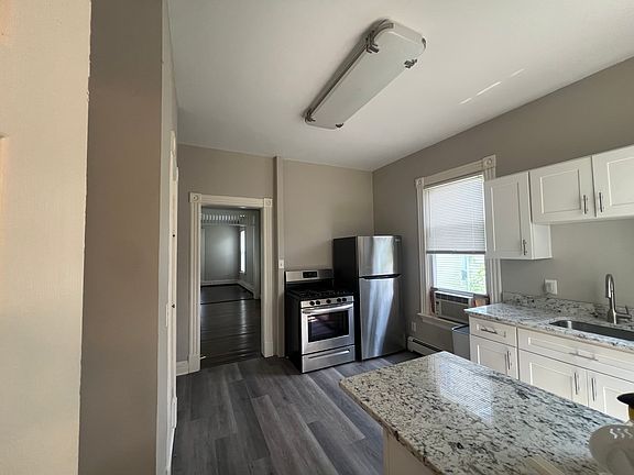 Gorgeous, main floor. Large, spacious, bright, newly renovated 2-bedroom, 1 bath. Wood floors. Stainless appliance. Full dining room, entrance from lovely front porch and from back door with access to backyard, driveway parking. Architectural features include stained glass in the entryway. Private home on a nice, quiet street. Walk to Main Street restaurant, shops, movies, art, music, more. No pets. No smoking. Additional garage use can be discussed.