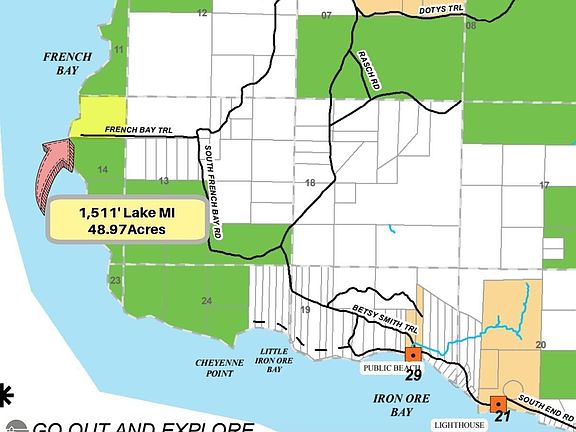 Offering 1,511 feet of private Lake Michigan waterfront on 48.97 acres on the southwest side of Beaver Island. There is a deeded easement to this property on South French Bay Road. The easement has not been completely installed. This could be a spectacular place to build your island dream home.