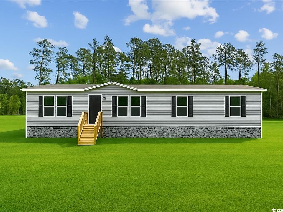 This brand-new Clayton Homes “Impact” model, sits on a spacious 1.25 -acre lot with no HOA and a peaceful wooded backdrop. Thoughtfully designed for comfort and flexibility, this 4-bedroom, 2-bath double-wide manufactured home offers 1,792 sq. ft. of modern living space, including a bonus room or office to fit your lifestyle. Step inside to find an open-concept layout filled with natural light. The chef-inspired kitchen features stainless steel appliances, sleek cabinetry, a large center island, and a generous walk-in pantry. A sliding glass door off the kitchen opens to a rear deck — perfect for relaxing, entertaining, or simply enjoying the surrounding nature. The split-bedroom floor plan provides excellent privacy, with the primary suite tucked away and featuring a walk-in closet and beautiful en-suite bath. Three additional bedrooms, a second full bath, and the flexible bonus room ensure plenty of room for family, guests, or a dedicated workspace. Located on a private road with light neighborhood presence, this home offers the ideal blend of seclusion and community. A perfect choice for buyers seeking move-in-ready new construction with land included and no HOA restrictions. Experience quality, value, and peace of mind in this stunning new Clayton home. Conventional, FHA, VA, and USDA approved! Call today to schedule your private showing! Less than an hour to the beach! (Pictures are of a Clayton Impact model home with similar finishes)