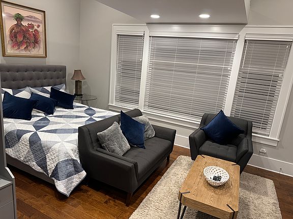 Fully furnished all the way down to the linens and towels! Beautiful light and bright main level living space with private exterior entrance. Fully appointed kitchenette, microwave, airfryer/toaster, coffee pot, kettle and frig/freezer. Unit has its own private laundry and backs up to a gorgeous park with miles of walking trails. No better way to start your day.