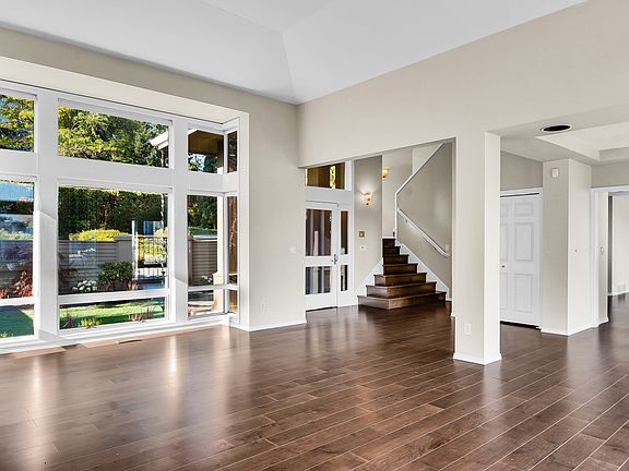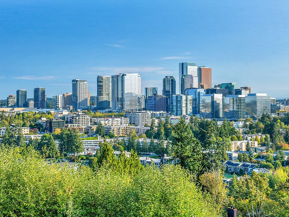 Custom home with stunning views of the Bellevue City skyline! Great natural light and... west facing Views-Views-Views from all rooms. Open floor plan and large view terraces for easy entertaining. Newly installed wood flooring though out the main level, continuing to the upper level spacious primary suite, guest room or large closet. Newly refreshed lower level offers two nice sized bedrooms plus two XX-Large family room spaces. Many options, use one as an office or gym. New carpet and paint. Great location less than a half mile from Old Main; easy walk to Hot-Hot restaurants. Easy access and pivot to 1-90, 405 and I-5 and no commute to DT Bellevue! 6-8 month termed desired but open to longer term.