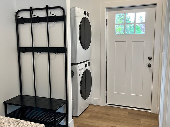 Charming, new ADU in the heart of midtown Bend. This bright and cheery unit includes two bedrooms each with its own private deck. The main floor has nine-foot ceilings creating a feeling of spaciousness in the living room and kitchen. All appliances are upgraded including a glass-top range with air fryer and washer and dryer with steam. Enjoy grilling on the private patio located on the east side of the building providing ample shade in the afternoon and evening. There are cable jacks in the living room and in both bedrooms providing fast internet for gaming or for work. This unit was designed to maximize privacy for tenants and the residents in the main house. Both bedrooms have room darkening curtains/blinds. Energy efficient ductless heating and cooling will keep you warm in the winter and cool in the summer.