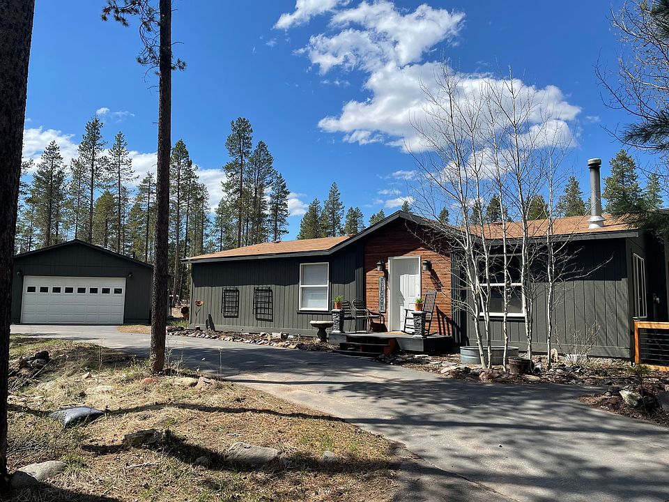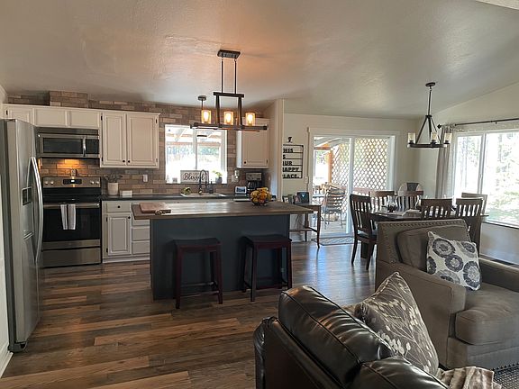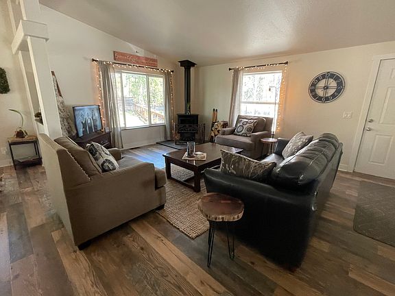 Completely remodeled 2 Bed 2 Bath home sitting on its own acre. New flooring, paint, and ss appliances. Washer and dryer included. Master has soaker tub. There is a wood stove in the great room, and a covered deck out back. New heat pump and AC installed last year. Home has wrap around driveway and 2 car detached garage. Located just outside of Sunriver in a quiet, calm neighborhood. Property will be ready to move in on January 5th, 2026.