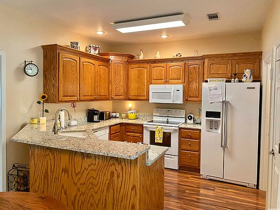 This amazing well kept 3 bed 2 bath home in sought after Heritage Farms has everything you are looking for!! Check out the beautiful new granite counters and wood floors, cozy gas fireplace and vaulted ceiling. Primary suite has 2 closets and sinks, jetted tub and separate shower with seat. Outside you will enjoy a covered patio, storage shed and luscious green lawn thanks to the in-ground sprinkler system. There is also a neighborhood pool and picnic area to enjoy. Hot water heater-2021-HVAC 2012-Roof 2016