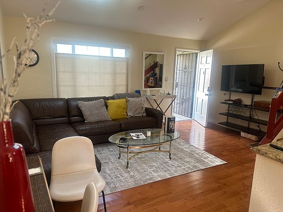 This is a one bedroom unit in a four unit community is towards the rear. It is fully furnished with a small backyard great for morning coffee or an evening dinner. There is a garge that can house a small car. This unit includes, WiFi, TV, a queen size bed and lots of storage. The negihbors are quiet and very friendly. Smoke and carbon monoxide detectors, Owner could be OK with a small pet. The term is flexible.