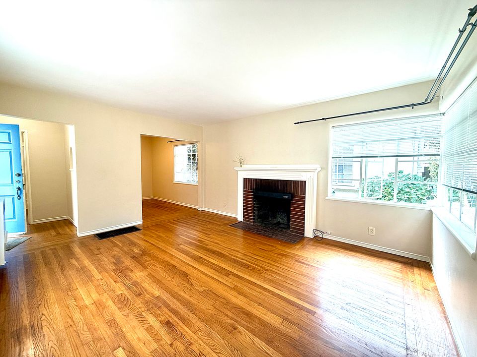 COTTAGE, Large ~800 sq ft , 1BR 1Bath, Downtown Berkeley, Natural Light, Unique, includes parking! This spacious, light filled cottage boasts a unique charm that's hard to find. From the inviting fireplace to the sweet succulent garden, every corner exudes warmth and character. It's prime downtown Berkeley location puts you just blocks away from the pulse of campus life, yet nestled in a residential community. With dedicated parking, it offers both convenience and comfort. Don't miss out on the opportunity to make this your new home. Unique extra large cottage apartment with lots of natural light in a stylish 1940's building located in downtown Berkeley, 6 blocks to CAL campus, close to shopping, restaurants, BART, buses nightlife, arts district. Freshly painted, updated lighting, gas heating and gas cooktop and oven, microwave. 1 Bedroom 1 Bathroom w/ tub shower Dining room Large living room Solid Hardwood floors Large windows Fireplace Succulent garden and patio Gas stove and oven original tile counters and lots of cabinets/ pantry space. *NOTE: New electrical and plumbing upgrades to accomodate a new washer/dryer in unit. (not shown in photos). The bedroom has a large doublewide walk-in closet, with lots of space for storage, built-in shoe racks, hanging poles, overhead shelving. New overhead fan/light. The large hallway can accommodate a desk, dresser, armoire &; has a Linen/utility closet Many cabinets/pantry in kitchen. All windows will have mini blinds, with rods to add draperies if you desire; kitchen has curtains. New portable clothes washer &; drying rack (not shown in photo). Parking on-site for one car included in rent; area parking permit also available from the City of Berkeley High-Speed Fiber Internet ready Utilities included: garbage, recycling Excellent walking and biking. Walk score: 93; Bike score 94 Showing by appointment only to qualified applicants with photo ID. *Screening Criteria for all applicants sent with inquiry via email.