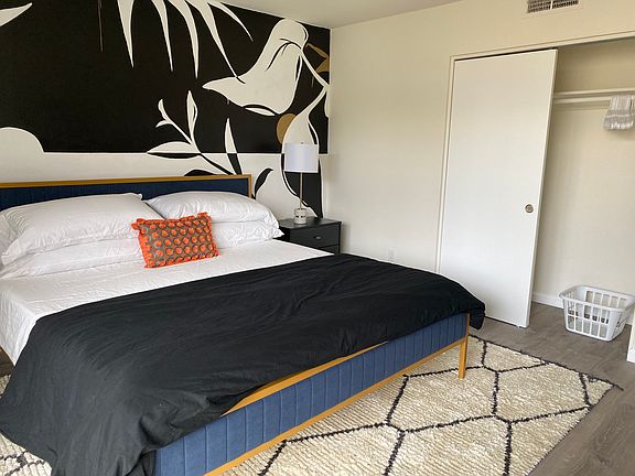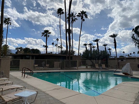 Step into vintage Palm Springs glamour in this fully furnished, 2-bedroom, 2-bath condo inspired by the classic Frank Sinatra era. Located in a gated community within a serene country club setting, this light-filled home features floor-to-ceiling windows, custom wall murals, and timeless mid-century modern design. Perfect for those who appreciate retro charm with modern comfort.
