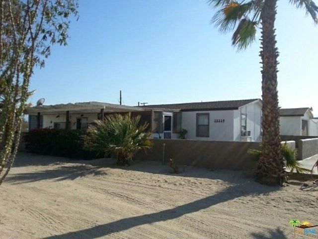 Charming rustic ranch on 2.5 ac. Horses,Date farm,Nursery? This home features partial tongue and grove walls and ceilings and lots of living space. The kitchen has been partially updated with plenty of counter space.Laminate flooring thru most of the house.There's 1 large bd and a 2nd bd that was opened to make more living space (can be converted back to make 2 bedrooms).Property features a 1 car garage,a detached 3 car steel building,several outbuildings that can be used for a horse shelter,tack rm,tool shed or whatever you want,over 1000 SF of workshop space.The property is fully fenced with an electric gate,2 putting greens,sprinkler system, screened porch & open patio for entertaining.Home has add on living space(buyer to verify permits) The possibilities are endless!Don't miss out!