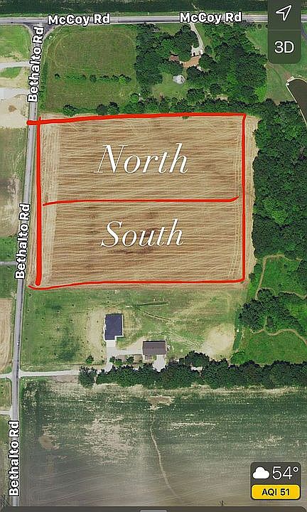 10 acre lot divided into two 5 acre tracts. This listing is for the NORTH lot. It is currently being farmed for cash rent. Bethalto School District.