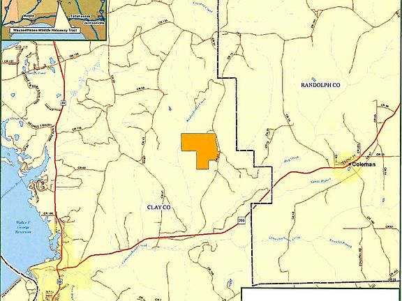 The Waukeefriskee Creek Tract. Located in Clay County Georgia, which is one of the best deer hunting areas in the South. The tract consists of 132 acres of hardwood bottoms, 92 acres of planted loblolly pines planted in 2020, 16 acres of longleaf pines planted in 2014, and 335 acres of fresh clear cut. The clear cut could be cleared for pastures or reforested. There are several streams with pond sites and Waukeefriskee Creek is on the northwest corner of the property. Several established food plots, and a great road system. Electric power runs into the property and county water is available. Over 2000' of road paved road frontage. Beautiful home sites!! Located near Ft. Gaines, Georgia and a short drive to Eufaula, AL and Dothan, AL. This place has it all!!!