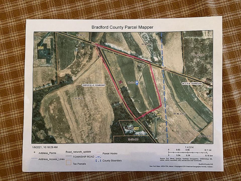 $12,000 price drop, no more real estate agents! 13 acres with road frontage on 2 sides. Very nice gradual grade from Lenox road down to Bidlack road. (Good for a nice driveway). Easy to get to, lesser traveled road. Great building site with a lot of space to do what you want. Perc site on property, (X on picture marks the spot). Electric line on property so cost of getting electric to house will be much lower. Buyer will get my 50% of all rights with the royalty checks. If you are looking for a building site, you should check this out! 15 minutes to Towanda or Athens/Sayre area. No flood zones, residential zoning, Athens school district. 2019 taxes $143. Would like to sell to build addition on my house.