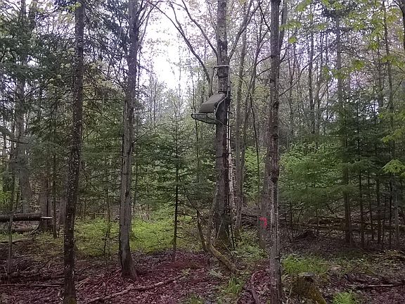 149 ACRES HUNTING LAND WITH TRAILS, BLINDS, SMALL CLEARINGS FOR FOOD PLOTS AND A CREEK. Nicely wooded with a mix of evergreens and hardwoods - many mature trees. Mostly high ground in a private, secluded area neighboring other Hunting Camps. No public utilities.