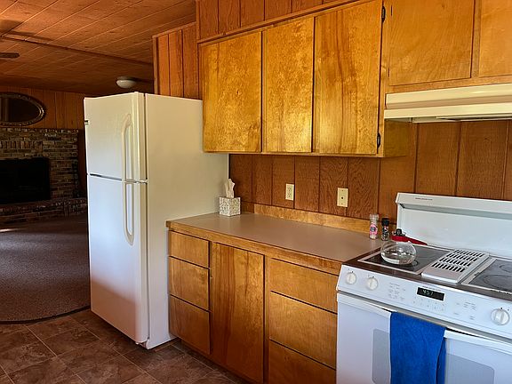 The home has a large kitchen, lots of cabinetry and views to the lake from the kitchen sink. A dishwasher is included. The bathroom has a step-in shower, and washer and dryer. The living and dining space has a fireplace and a view to the lake. The large front porch is great for relaxing evenings and diners outside. The home is lightly furnished or can be rented unfurnished.