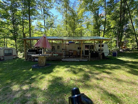 Large lot (4.92 acres) on the north side of Sawyer Lake in Langlade County. Sloped driveway access to a sweet camping spot up on the hill. Wooded with undulating terrain. Just across the street from Sawyer Lake with a boat landing nearby. This is off grid camping, and includes 1972 Monitor trailer with addition, 1985 Coachman trailer, 2005 Resort trailer with deck plus many other items to be used for camping. Outdoor Privy, generator, grills and more. This lot would also be a nice building site and sits back away from the road so it is secluded.