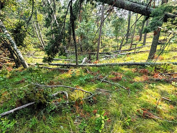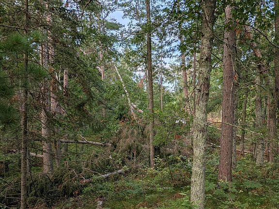 This property features 200 feet of shoreline on Wolf Lake, which connects to the Cass Lake chain. It is adorned with beautiful red pines, oaks, and chokecherry trees. A large bald eagle's nest is situated on the property, and from the top of the lot, you can enjoy a scenic view of the lake.