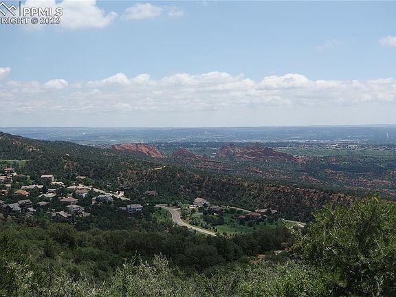 This lot has beautiful pinyon pine forest with accompanying cedar, juniper, wild life, and wild flowers endemic for this region between the Garden of the Gods and Cave of the Winds. The property has magnificent view of Pike Peak, the west side of the Garden of the Gods and Colorado Springs.