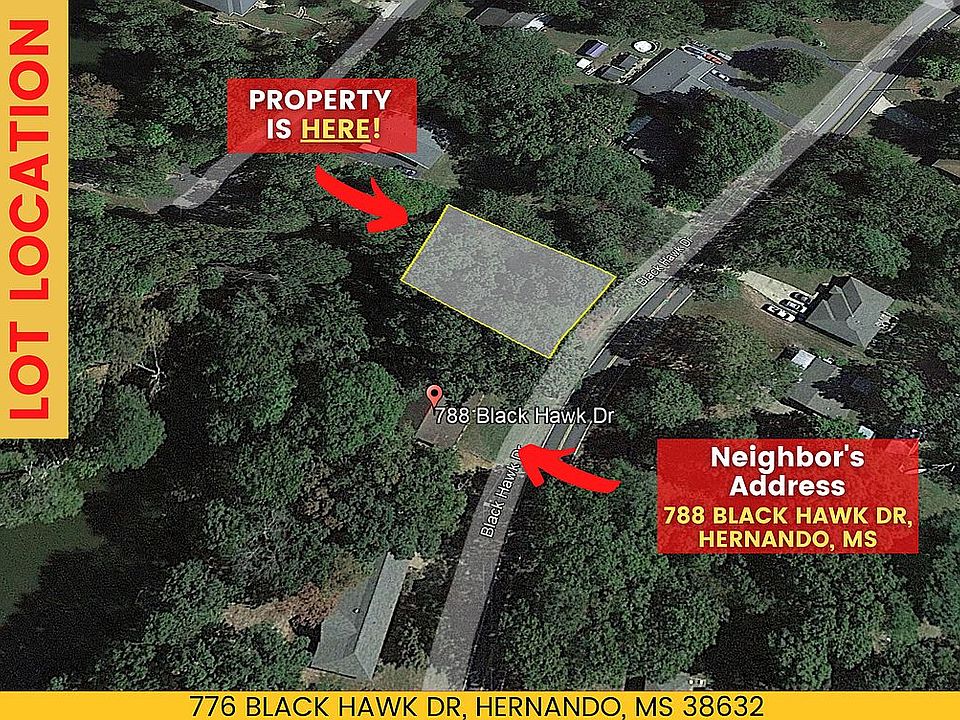 0.29 acres Waiting for you to Build Your Perfect Home in Buena Vista Lakes, MS! ********************** WHY BUY THIS PROPERTY? 1. Great vacant lot on a Lake Home Community in Hernando, MS with lots of lake access. 2. Build your perfect dream home in this serene place and Experience the Finest of Southern Hospitality. PLUS! This can be a great investment as your home is more likely to increase in value and be able to rent it out or sell it if you decide to move. 3. Don’t miss out on this amazing deal for only $9,900 cash or make an offer! ********************** Community Details: Hernando is a Cozy, Small-town, that’s Excellent for someone yearning to get away from the Big City! There are many Mom & Pop shops, Great Coffee spots around town with a variety of options for Recreation, including several well maintained Parks for children & dogs. Plus, many people in Hernando know each other, which really adds to the small-town community feel. And these 0.29 acres sit in a quiet neighborhood that is Perfect for Raising a family & making new friends. The school systems are dedicated to providing Quality learning for students & there are tons of restaurants, banks, & churches. Come build your Forever home in this Lake Community, that has lots of activities for families with children. This deal won’t last long, so call us now to learn more or make an offer! ********************** PROPERTY USE: Property is zoned Single Family Residential which allows Single Family Homes **************************** PROPERTY INFORMATION: - Lot Type – Vacant Land - Sale Price - $9,900 - State – Mississippi - County - DeSoto - Assessor's Parcel Number - 408613010 0013100 - Property Usage – Detached single-family dwelling - Property Address – 776 Black Hawk Dr, Hernando, MS 38632 - Size - Acre(s) – .29 - Road Access – Paved road - Electricity – at the street - Water – City - Septic – Treatment System *** reach out to the county Health Department for a Treatment System Approval **************************** HOW TO ACCESS: You can use the address 776 Black Hawk Dr. to find the property via Google maps. Road to the property is paved. **************************** POPULAR ATTRACTIONS: Downtown Hernando is 11 minutes away & Memphis just over 30 minutes. This means commuting to either location will be a breeze! As you plan your weekend trip, we highly recommend checking out the Coldwater River Nature Conservancy. You can Fish on the Lake, hike a Scenic trail or live with Nature during a camping outing. This area is a Nature Lovers paradise that is only 23 minutes away! And the National Civil Rights Museum in Memphis has brought history to life. It’s filled with a ton of Extremely Important Historical items that are very Educational to see & read. **************************** GOT QUESTIONS? WE HAVE ANSWERS! - Call/Email us now to know more. All offers will be considered! - We may have other properties at bargain prices available. All you have to do is ask! - Don’t hesitate! Connect with us today while this incredible deal is still Available! **************************** DISCLAIMER: Buyer must verify & work with County to know what can & can't be done with the land, obtain proper permits if needed & confirm the availability of any utilities needed/serviced on the lots. Seller makes no warranties or representations about the land, its condition, or what can be built on the parcel.