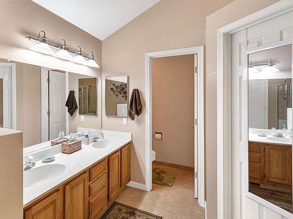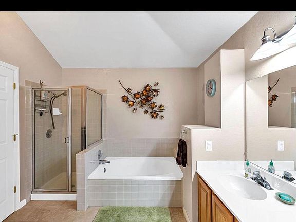 Large Master Suite with ensuite bathroom, dual sinks, soaking tub and shower with walk in closet off the dining room, whilst the second bedroom is the opposite side of the house with direct access to the main bathroom.