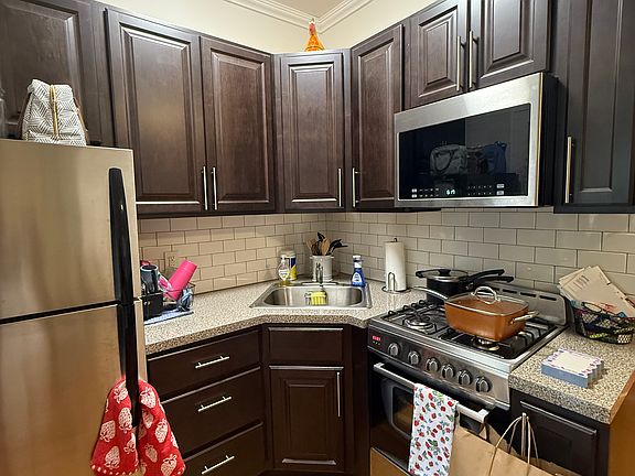 Great 4 room apt. with hardwood flrs. Through out, freshly painted, up dated kitchen with stainless steel appliances included, ht/hw incl., tiled bathroom, laundry rm., and near NYC Trans.
