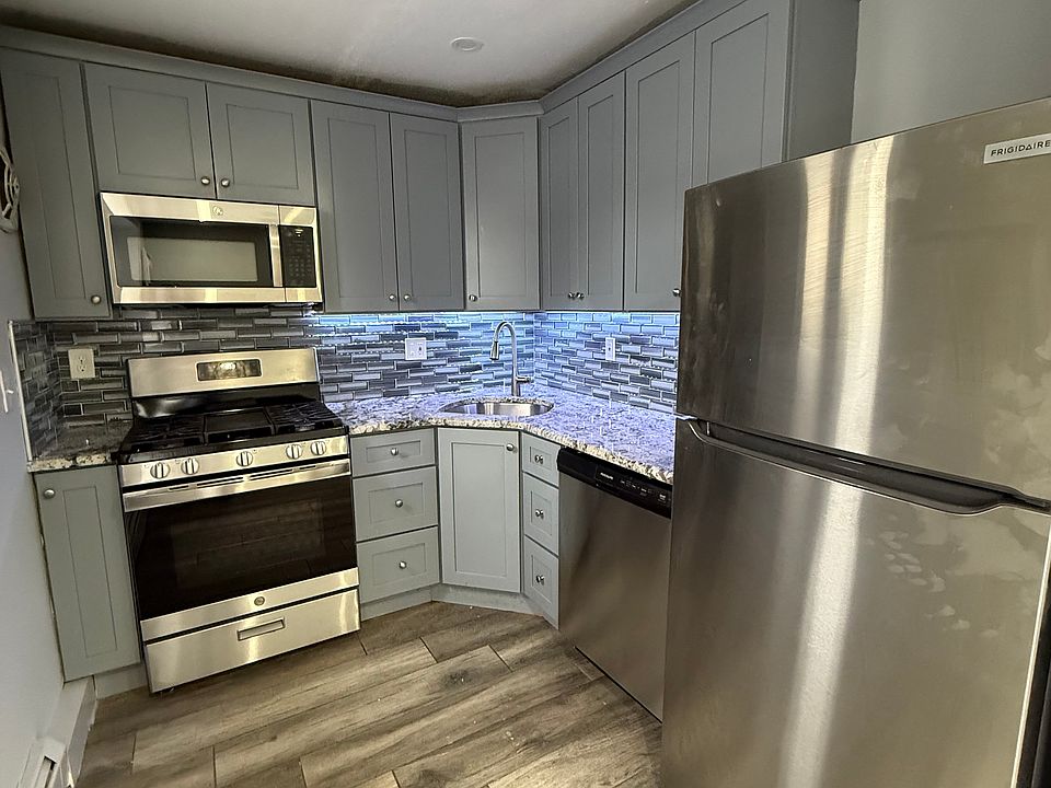 Renovated 2 bedroom apartment near NYC Trains! This apartment features new kitchen with stainless steel appliances included, dishwasher, microwave, refrigerator, granite counter tops, tiled back splash, refinished hardwood floors through out, freshly painted, high-hats, lots of closets, tiled bathroom, laundry room, wall A/C, and one off street parking!