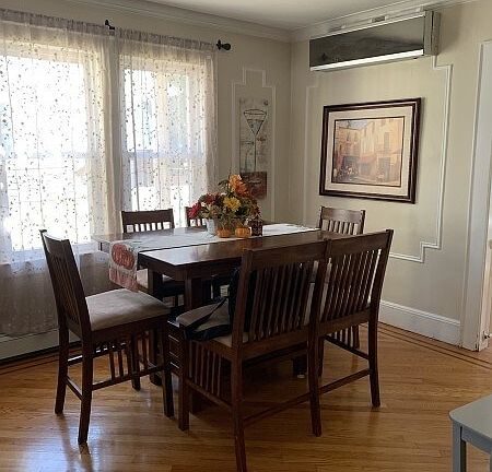 This two-bedroom can be used as 3bedroom , one-story apartment boasts hardwood floors throughout, freshly painted interiors, and an updated kitchen equipped with all stainless steel appliances, including a dishwasher, microwave, refrigerator, wall air conditioning, reset lighting, and a dining room. The apartment also features two full bathrooms, a finished basement, a driveway, a backyard, and additional amenities.
