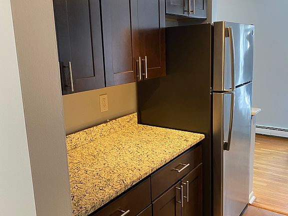 This spacious one-bedroom apartment features heat and hot water included, beautiful hardwood floors throughout, a kitchen with a dining area, granite countertops, a tiled backsplash, and all necessary appliances, including a refrigerator, microwave, dishwasher, wall air conditioning, ample closet space, reset lighting, a laundry room, and assigned parking. Additionally, the apartment is conveniently located near transportation, shops, and restaurants.