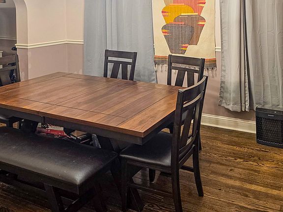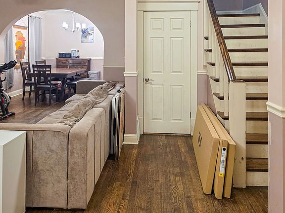 THIS BEAUTIFUL & UNIQUE HOME HAS STRONG CURB APPEAL AND LOCATION. THE 1ST FLOOR OFFERS A SPACIOUS LIVING ROOM AND A SEPARATE DINING ROOM W/ HARDWOOD FLOORS AND CROWN MOLDINGS. ENJOY YOUR LOVELY UPDATED KITCHEN WITH STAINLESS STEEL APPLIANCES AND PLENTY OF CABINETS. THE GORGEOUS STAIRCASE LEADS TO THE SECOND FLOOR, OFFERING 2 BEDROOMS, AMPLE CLOSETS, AND A FULL BATH w/ DOUBLE SINKS & A WHIRLPOOL TUB. NEWER WINDOWS AND A/C. THE FULL BASEMENT OFFERS THE WASHER AND DRYER AND PLENTY OF SPACE. PLUS A FENCED MATURE YARD AND A CONCRETE PATIO FOR ENTERTAINING. DETACHED 2 CAR GARAGE OFFERS EXTRA STORAGE AND CONVENIENCE ON UPCOMING SNOWY NIGHTS! HURRY ON OVER !
