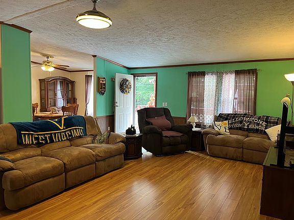 Owners Retiring and offering this sweet, convenient home for sale! This modular home is on a permanent foundation. There is a new metal roof that was placed in 2022 (40 year warranty). New hot water was placed last winter. All appliances that pass are not the original models, with the exception of the fridge! The heat pump was installed in 2019. In the living room there is a stone fireplace that is the focal point. Electric logs add to the ambiance. This property is located on a dead-end street and the front porch faces a creek and wooded forest. The back of the home has a deck that is accessible from sliding doors or a single door off of the utility room. Perfect opportunity to purchase a great home under $100,000! **Home inspections are welcome for information purposes only.
