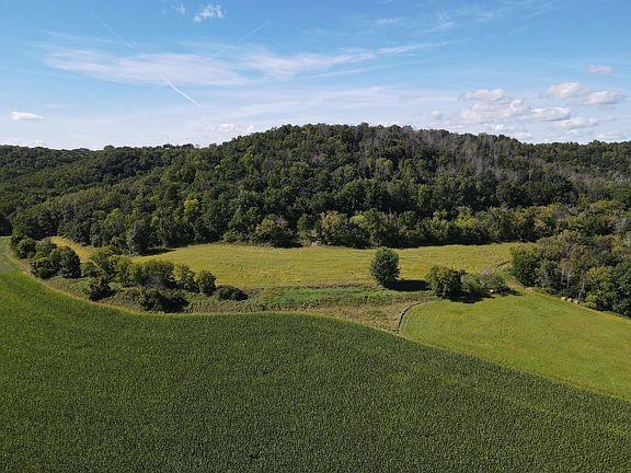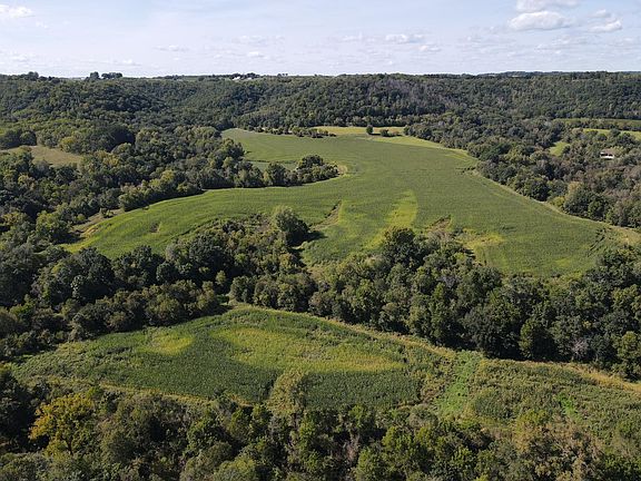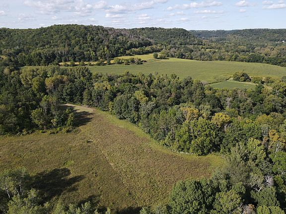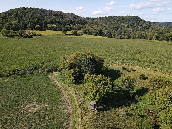 Welcome to Pepin County! If you’ve been waiting for the right one to hit the market, the wait is over. This turn-key 148 acre hunting property features phenomenal topography and an awesome layout, with 60+- income producing tillable acres, and the remaining land covered in towering and mature oak, maple, walnut and pine. Bogus Creek, a Class 2 Trout stream, is a sand bottom, clear-water creek that flows along the SE border, providing over 1500 feet of creek frontage. Dedicated food plots planted in oats, radishes, beans and clover are in place near the tillable to attract and hold trophy whitetails all season long. Seven Banks Blinds and multiple ladders stands are already in position overlooking them. The bluff top food plot provides panoramic views of the surrounding area. There’s an extensive road and trail network in place on the land. The next owner will have some excellent building sites to select from should they choose to build here, and there are no covenants, deed restrictions or MFL programs. Located just over an hour away from the Metro Area, and a mile north of Lake Pepin, this land is an ideal getaway. The WOW factor is off the charts with this one. Come check out this world class hunting property in scenic Pepin County, Wisconsin!