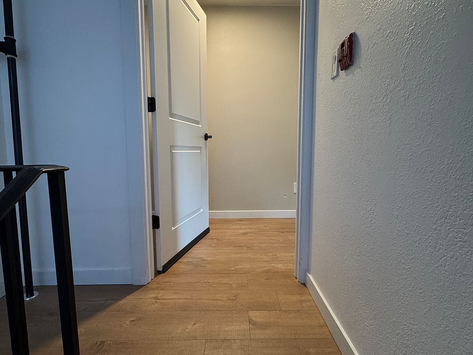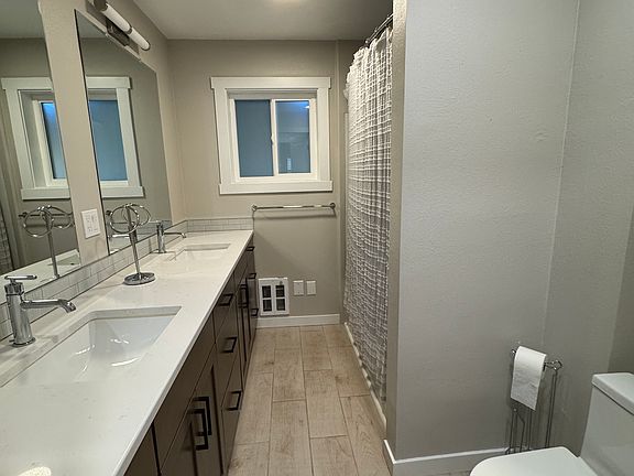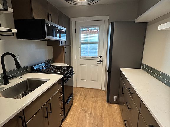 Newly remodeled 1 bedroom apartment. Featuring LVP flooring and quartz countertops, this light and bright apartment is ultra clean and ready to rent on 12/1/25. The kitchen has ample storage, quartz counters, apartment sized stove and refrigerator with built in microwave. The large bathroom has dual vanities and full bathtub over shower combo. Shared laundry in building. Enclosed back deck and shared yard.