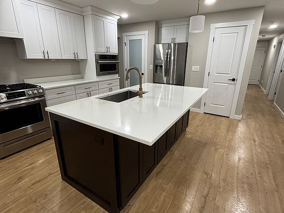 Modern dual vanityQuartz countertopsStainless steel appliancesPrimary suiteBeautiful walk in showerHallway bathroom