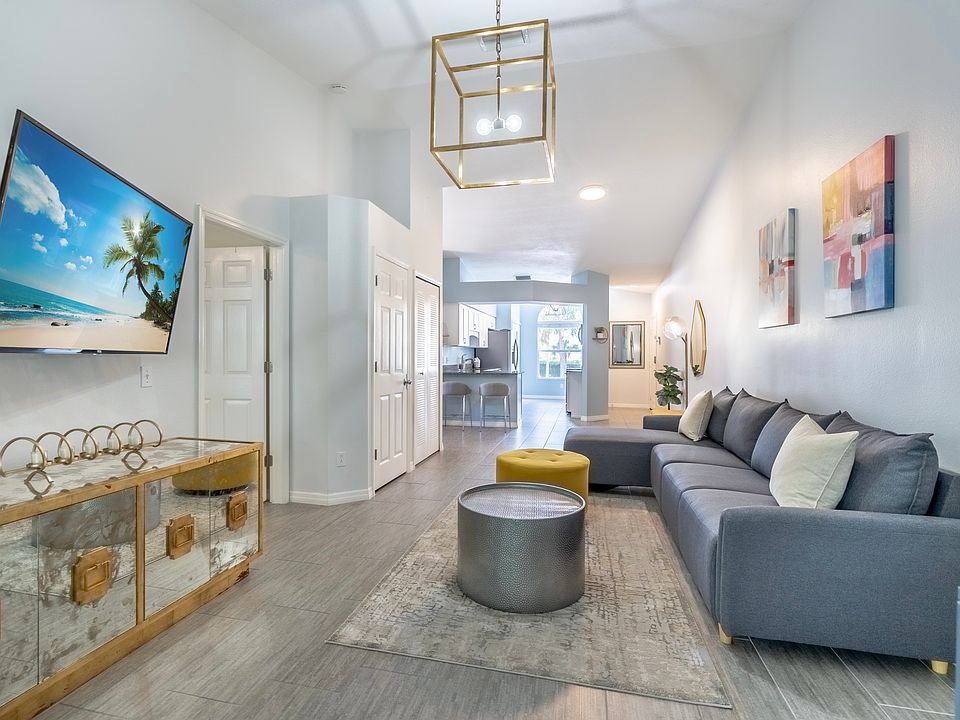 Oversized lanaiExquisite modern furnitureItalian tilingVaulted ceilingsRare private backyard