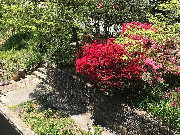 Stone patio terraceNewly refinished wood floorsLarge sun roomTerraced garden bedsSouth facing yardScreened porchCustom closets