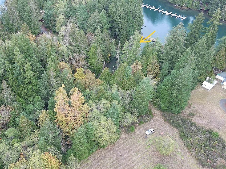 Waterfront, Fisherman's Harbor! Well. Boat launch easement. See notes on the photos. Important to see the plat maps to understand the geography. The boathouse is not included,easement adjacent for boat launch only. Approximately 4 acres of flat building space to build your new home and shop. Apple and pear trees. Helicopter landing space. Creek frontage to the West. Private, quiet, secluded and peaceful. If you have been looking for that special quiet place to go fishing or just enjoy the serenity then you