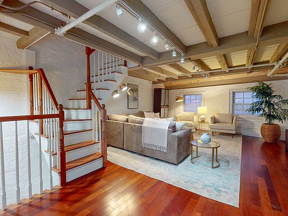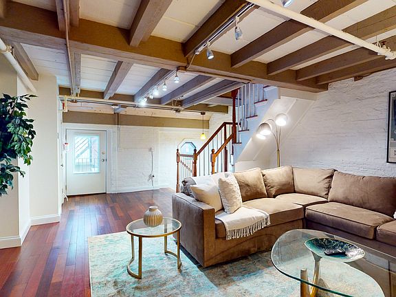 Welcome to this stylishly furnished tri-level 1.5 bath townhouse, located in the heart of Boston's historic Union Square/Faneuil Hall area. This charming residence combines modern amenities with timeless design, featuring rich dark wood floors, bespoke finishes, and a spiral staircase that adds a touch of character and leads to a warm, inviting atmosphere.On the first floor, an open kitchen and dining area create a seamless living space, complete with modern appliances and a dining table that comfortably seats four, perfect for cozy meals or entertaining friends. The full bathroom on this level includes a walk-in shower for added convenience. Additionally, the unit is equipped with in-unit laundry and central air conditioning for optimal comfort.Upstairs, the living room boasts a large sectional sleeper sofa and armchairs, ideal for unwinding in front of the flat-screen TV. This level also includes a convenient half bath.The primary bedroom, situated on the top floor, is bathed in natural light from overhead skylights, providing a tranquil retreat after a day of exploring the city.Situated just steps away from iconic Boston landmarks like Quincy Market and Faneuil Hall, this townhouse is ideally located to experience the citys vibrant food and shopping scenes. Mass General Hospital is within walking distance, and the Freedom Trail, North End, and Christopher Columbus Park are nearby for scenic strolls along the Harborwalk. With easy access to public transit, this property offers a convenient stay in one of Boston's most celebrated neighborhoods.Pets are considered on a case-by-case basis, and the condo is conveniently located near public transportation, ensuring an ideal stay for visitors seeking both comfort and accessibility.360-tour: **