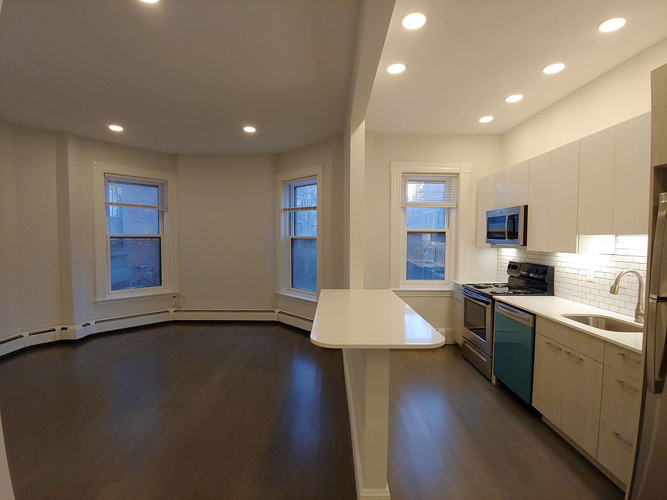- Exterior features: Bay Windows, Breakfast Bar, Eat-In Kitchen, Heated Bathroom Floors, High Ceiling, Marble Bath, Modern Bath, Modern Kitchen, New Appliances, New/Renovated Bath, New/Renovated Kitchen, Oven/Range, Quartz Countertops, Recessed Lighting, Renovated Kitchen, Stainless Steel Appliance(s)