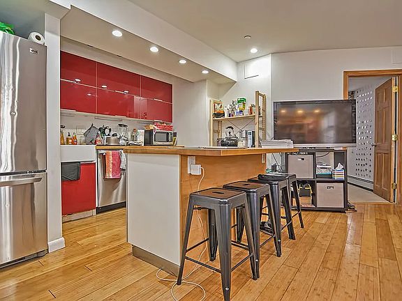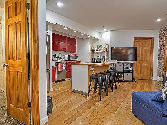 Updated modern apartmentCharming exposed brick wallsHigh-end fully equipped kitchenSpacious primary bedroomQuiet tree-lined streetsHistoric brownstonesTwo-bedroom one-bath home
