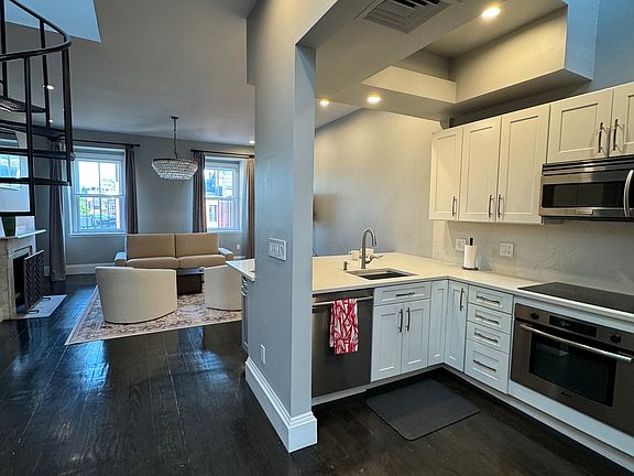 Charming decorative marble fireplaceStainless appliances inc dishwasher