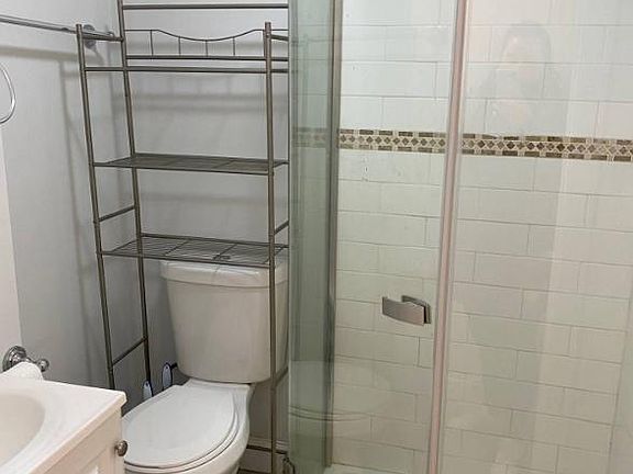 Back deckHardwood floorsOn-site laundryStainless steel appliancesTiled bathroomShared yard spaceBasement storage space