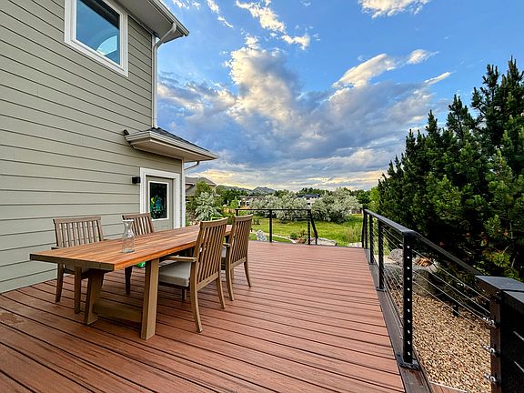 The patio has stunning views of the Flatirons and the Boulder foothills. It has a 3-burner gas BBQ grill.