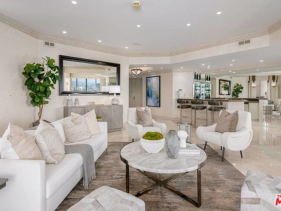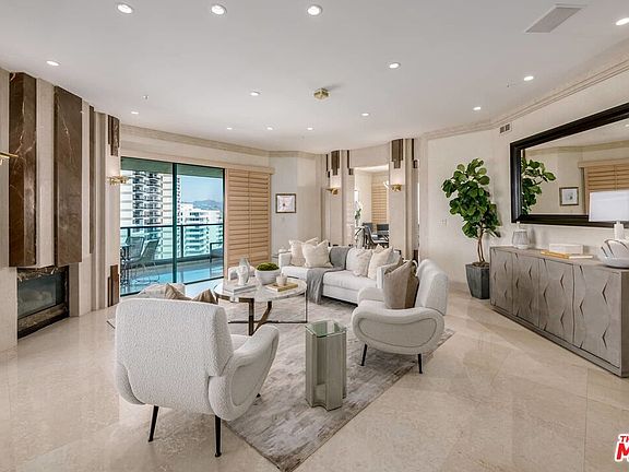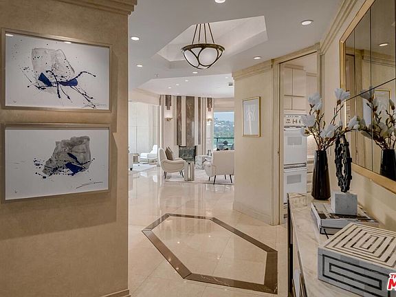 Dazzling Panoramic Vistas from the Getty Museum to Downtown LA. This perfectly-poised, corner St. Moritz plan 2 bedrooms, 3 baths condo at the premier Blair House has it all. Tremendously scenic and light indoor-outdoor feel yet so private. From the formal foyer to the spacious open living room with fireplace and large sliding doors and patio, entertaining areas with spacious wet bar and blt. ins.-to the inviting formal dining room leading into the gourmet peninsula kitchen with built-in desk, eat-in area, and stainless/steel appliances, experience a wonderfully sophisticated livability. The central hallway leads to a stunning powder bath followed by a gracious guest suite plus a sumptuous primary suite with blt. ins, private patio, full bath and double closets. Large window walls embrace the views from both suites while broad interior walls provide the perfect canvas for art and treasures. The over-sized utility room has a side by side washer/dryer, loads of storage cabinets and a separate utility closet. Striking Deco inspired fixtures, custom marble and granite finishes and flooring provide the perfect backdrop to sweeping city and mountain views. All this and more at The Blair House, a full-service, full amenity building with 24-hour security, doorman, valet, guest parking, fitness center, recreation room wine storage, lighted tennis sports court, saline pool w/spa, & earthquake insurance. Sited on prized corner locale on the the Wilshire corridor.