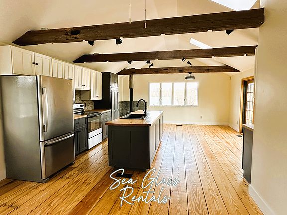 Available Now This stunning 4-bedroom, 2-bathroom home sits on 60 acres in Bowdoin. This is 2500 sqft 2-story home with amazing nature views. First floor has a spacious eat-in kitchen with island, freshly painted 2 tone cabinets, new appliances and butcher block countertops, laundry room with washer & dryer, living room, formal dining room, bedroom # 1, extra small room for storage/crafting, etc.., bathroom with tile surrounding shower and a great sitting room with lots of natural light. The second floor has bedroom #2 to the right with a walk-in closet, bathroom, small room with built-ins that can be used as an office, bedroom #3 is massive with attached room that could be a big closet, then down a small hallway there is bedroom #4 with back stairwell that ends in the dining room. All hardwood floors have been refinished, exposed post and beams throughout, water filtration system, heating is oil and electric, huge wrap around deck, skylights, fireplaces are capped and not usable, built-ins, ceiling fans, great yard space and off-street parking. Attic will be fully insulated and basement is spray foamed. All outbuilds are not included with rental. 1 or 2 Cats may be considered with pet rent and no smoking of any kind. Rent is $3,000.00 with water, sewer, lawn care and plowing services included. All other utilities are tenants' responsibility. Enjoy all the scenic views and wildlife from your doorstep or travel 28 minutes to Brunswick or Augusta and 47 minutes to Portland. Enjoy feeling far away but close to restaurants, shopping, entertainment and much more. A completed application is required prior to viewing any property; you may find the application on our website at wwwseaglassrentalscom. Lease, security, credit and background check.